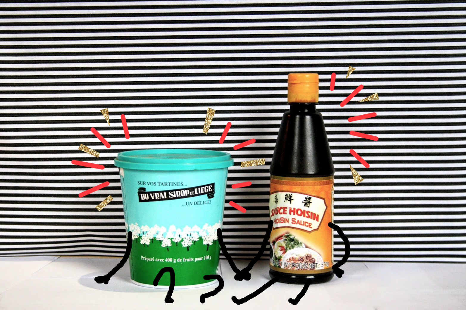 Ajouter trois cuillères à soupe de Sirop de Liège, 2 cuillères à soupe de sauce Hoisin et une cuillère à café de Sriracha.