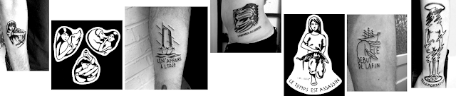 Il est souvent laborieux de mettre les mots sur ce qui touche dans un dessin –ou dans un tatouage, en l’occurrence. Et ce d’autant plus lorsque leur force réside en leur capacité d’évocation. Pas de fioritures, de détails complexes ou de couleurs chatoyantes ici. Le maitre mot est la simplicité : « Je fais le dessin au plus simple à partir d’une idée. Ce n’est pas le graphisme qui fait le dessin, mais vraiment l’idée derrière. Faut que ça parle, ce n’est pas ornemental »