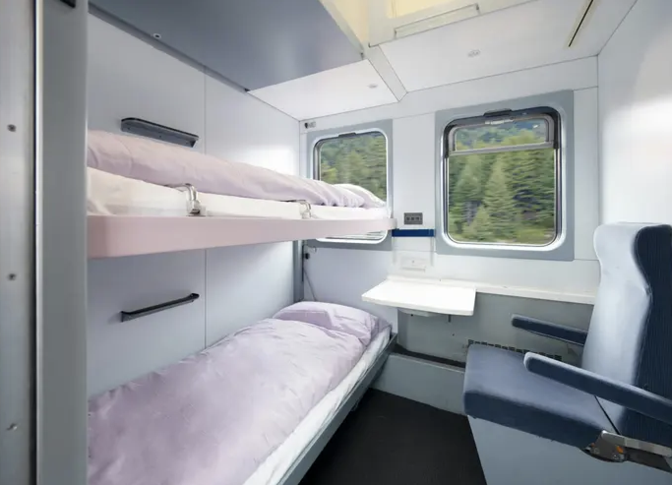 Envie de vous offrir le luxe d’un voyage en train de nuit comme dans les films ? Moyennant 239.99 euros le billet, à vous le compartiment 3 personnes privatisé, avec « matelas confortable, draps frais, oreiller et couette ». Ainsi qu’un espace salon séparé, parce qu’on n’est pas des bêtes.